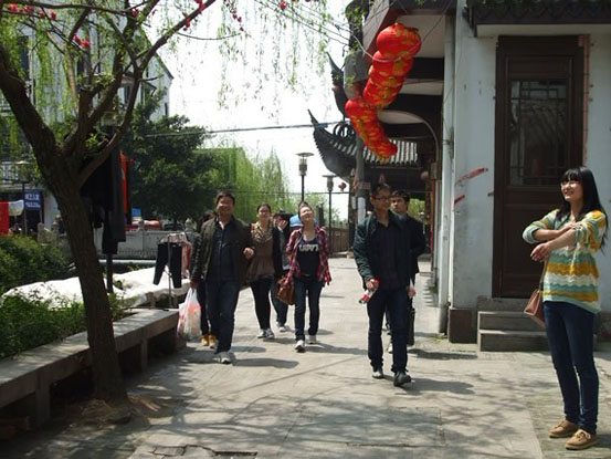 這一站是別有風(fēng)韻的江南民居,小巷那古樸、清幽、靈性有韻味,就如江南詩(shī)性的靈魂一樣,婉轉(zhuǎn)悠長(zhǎng),如歌如章,沒有曲調(diào)先有情的感覺油然而生。算是最有韻味的一處風(fēng)景。走進(jìn)小巷,那青磚黛瓦的民居,鋪著石板路的街道,感嘆于江南民居深厚的文化底蘊(yùn),醉心于清新秀麗的風(fēng)水畫。